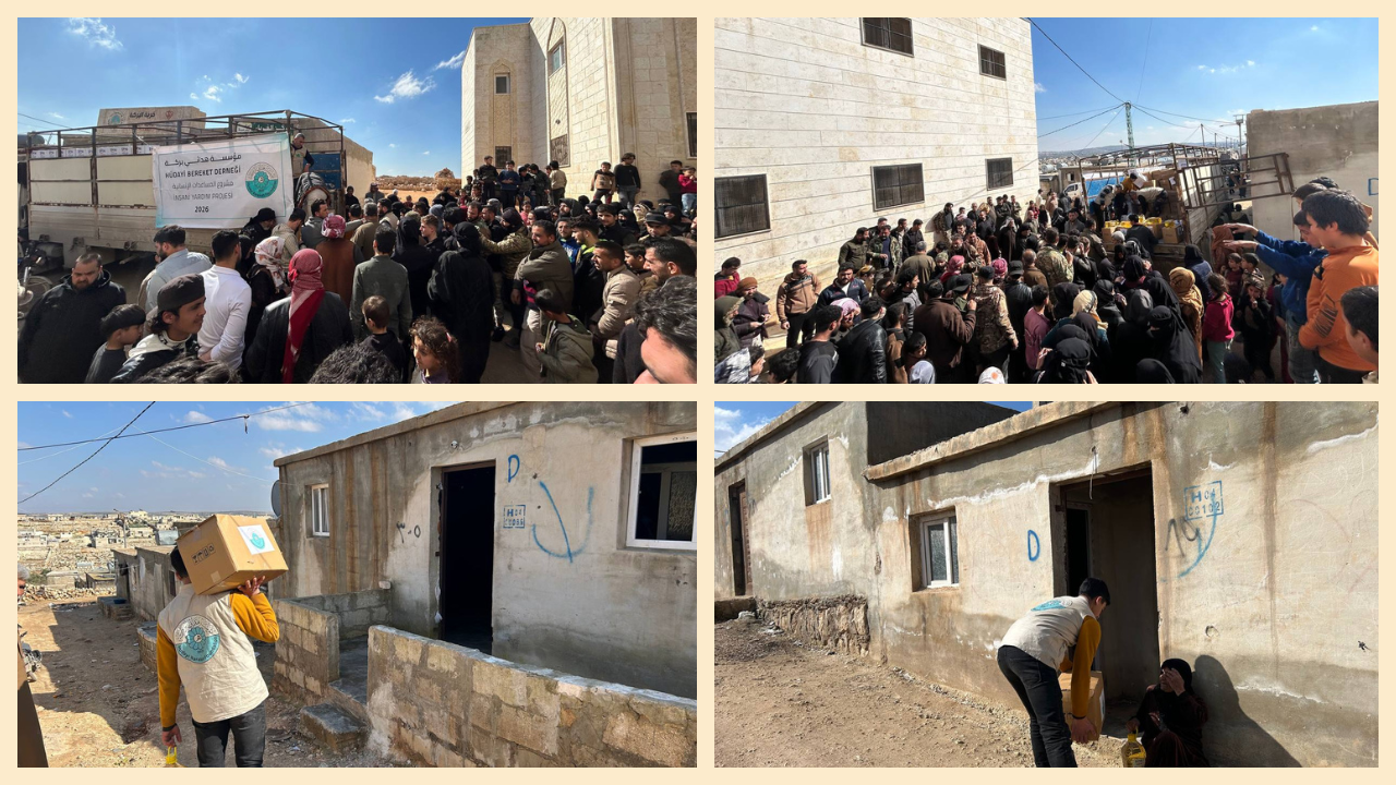 قامت مؤسسة هدائي بركة بعون الله تعالى بحملة توزيع سلات غذائية رمضانية بتاريخ: 20 - 02 - 2026 تحديداً في منطقة مخيمات حزرة بمحافظة إدلب، وذلك تخفيفاً على العائلات الفقيرة، نسأل الله تعالى أن يغني المسلمين أجمعين وأن يكفيهم حاجتهم برجمته وفضله