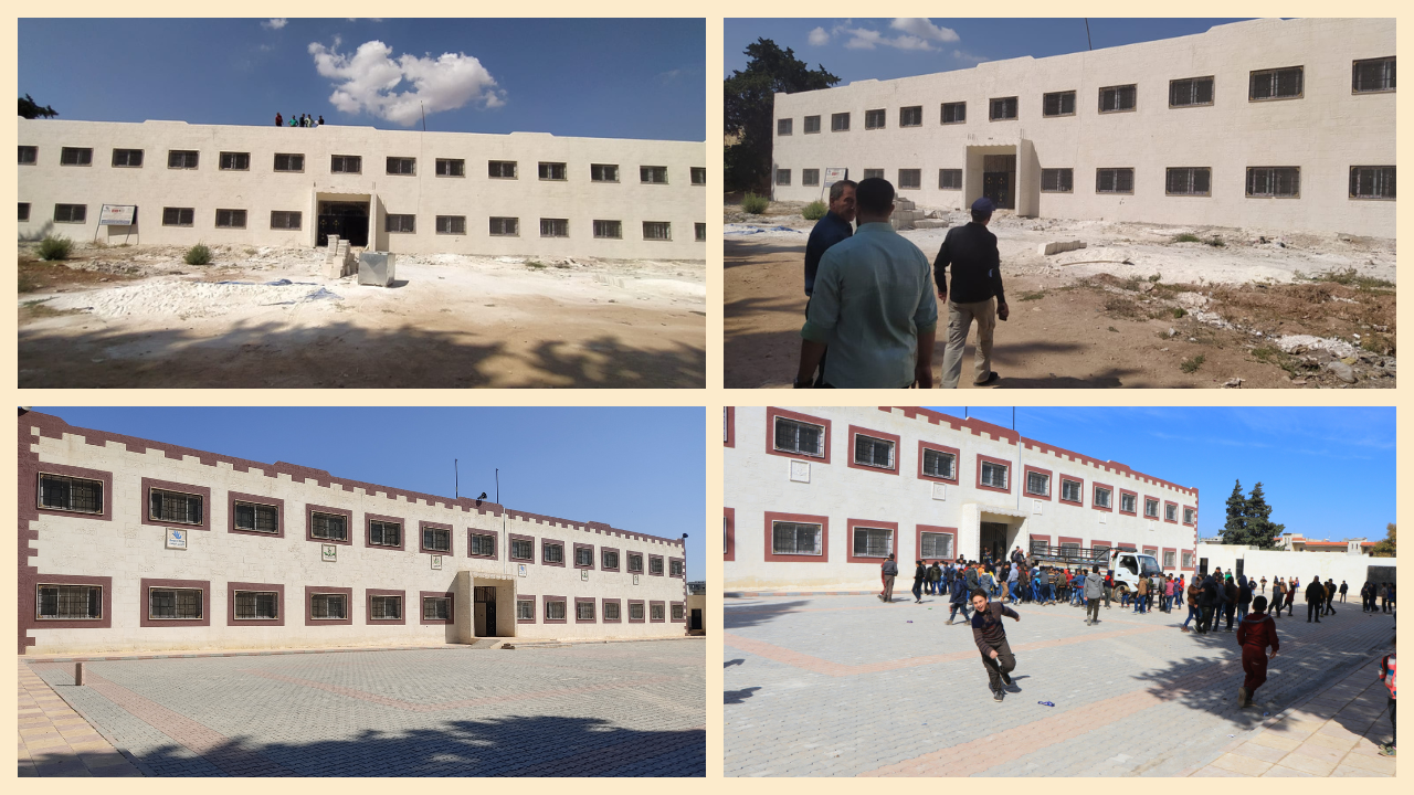 قمنا برصف باحة الطلاب بحجر الانترلوك وإضافة مرافق صحية ضمن الباحة مع غرفة للحارس وعامل التنظيف وتسوير المدرسة بجدار من الخارج مع إنشاء مسجد صغير يستفاد منه للعامة ولطلاب المدرسة لفعاليات العلوم الإسلامية