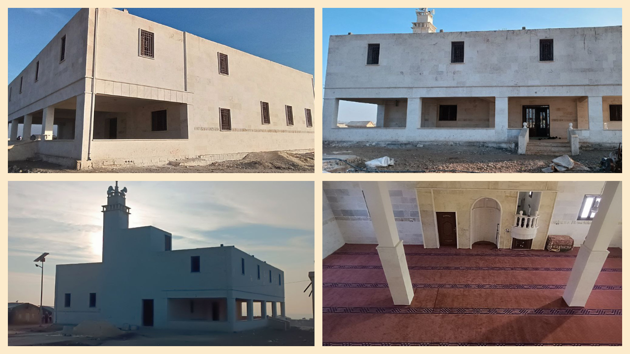 قمنا ببناء مسجد (لم الشمل) في منطقة (الراعي) الواقعة في (محافظة حلب) والذي تم بناؤه بكل فخر واعتزاز ليكون منارة للهدى والتقوى. لقد حرصنا على تصميمه بما يناسب المؤمنون ويعينهم على أداء صلواتهم، ويجتمع فيه الخير والمحبة. وليتم نشر العلم والخير فيه