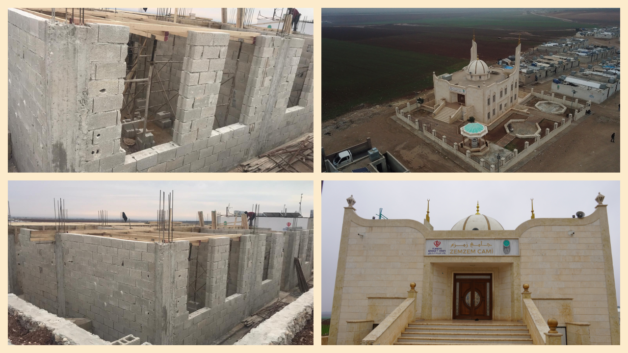 قمنا ببناء مسجد (زمزم) في منطقة (أعزاز) الواقعة في (محافظة حلب) في منطقة شمارخ والذي تم بناؤه بكل فخر واعتزاز ليكون منارة للهدى والتقوى. لقد حرصنا على تصميمه بما يناسب المؤمنون ويعينهم على أداء صلواتهم، ويجتمع فيه الخير والمحبة. وليتم نشر العلم والخير فيه